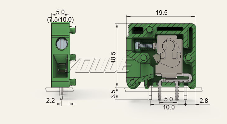 有乐首页 > 产品中心 > PCB线路板接线端子 > LG系列直焊式接线端子 > 间距-5.0/5.08 > LG105R-5.0/LG105R-7.5