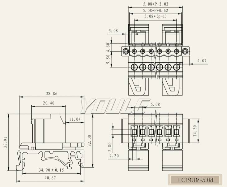 有乐首页 > 产品中心 > PCB线路板接线端子 > LC系列插拔式接线端子 > 间距-5.0/5.08 > LC19UM-5.08