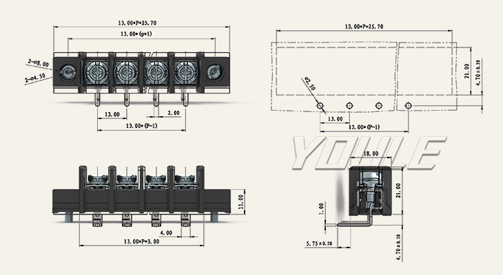 端子 弯针栅栏式端子 黑色电流端子