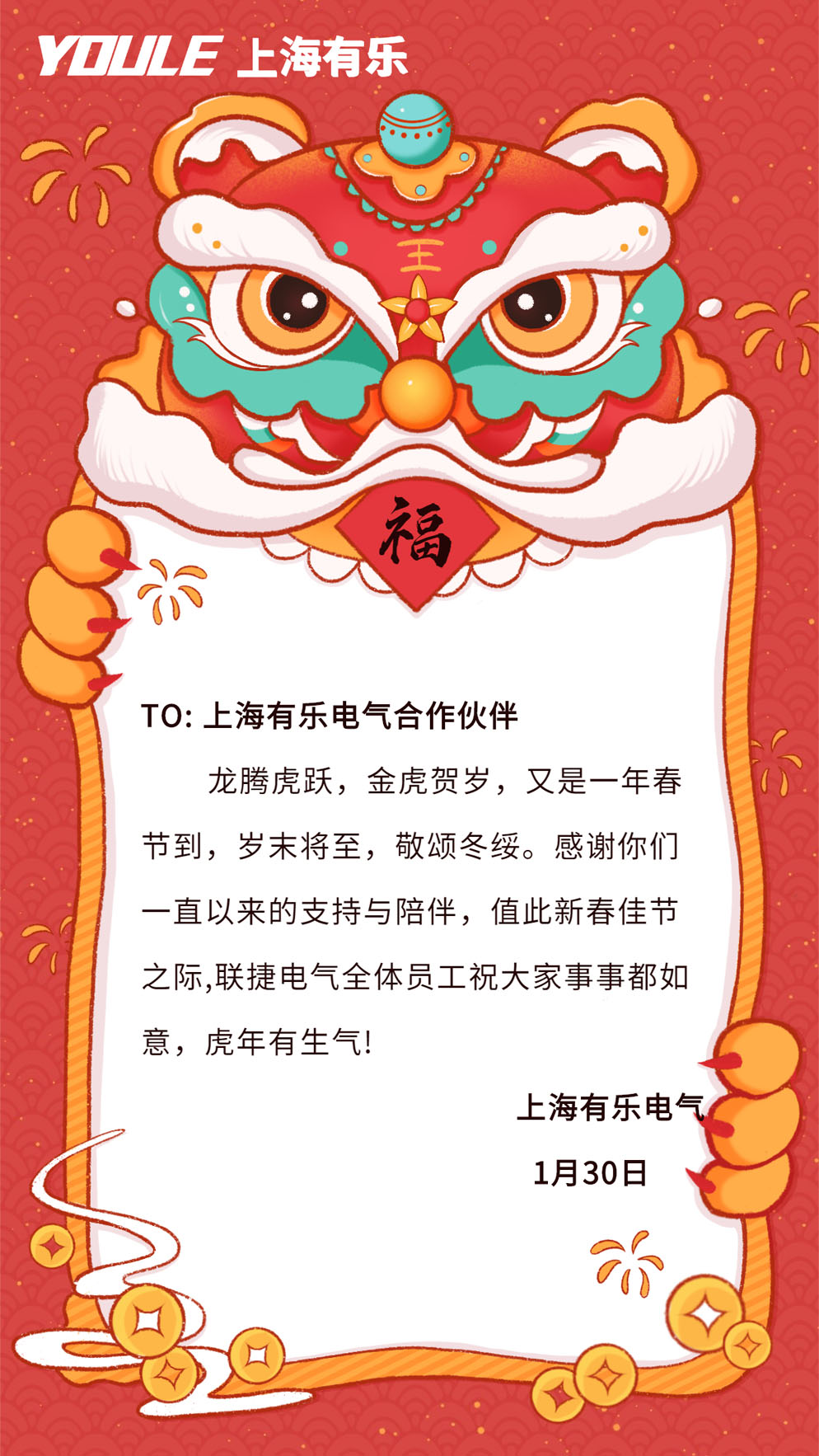 有乐首页 > 新闻资讯 > 行业动态 > 上海有乐全体员工祝您虎年大吉!