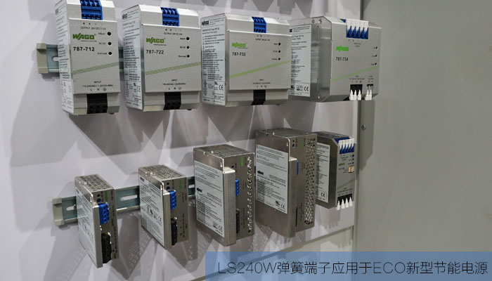 新型ECO经济型电源采用的连接端子为双层弹簧式LS240W-2.54端子。该端子间距小、无按键规格,使得端子的高度大幅降低,较大程度的节约了接线空间,能很好的适应ECO经济电源的安装环境;采用碟式弹簧作为紧固件,单芯线可直接插入端子内部,无需手把辅助,导线退出时只要一把起子压下即可轻易将电线取出;颜色可定制,我公司可根据客户需要定制其所需颜色:黄、蓝、灰等。